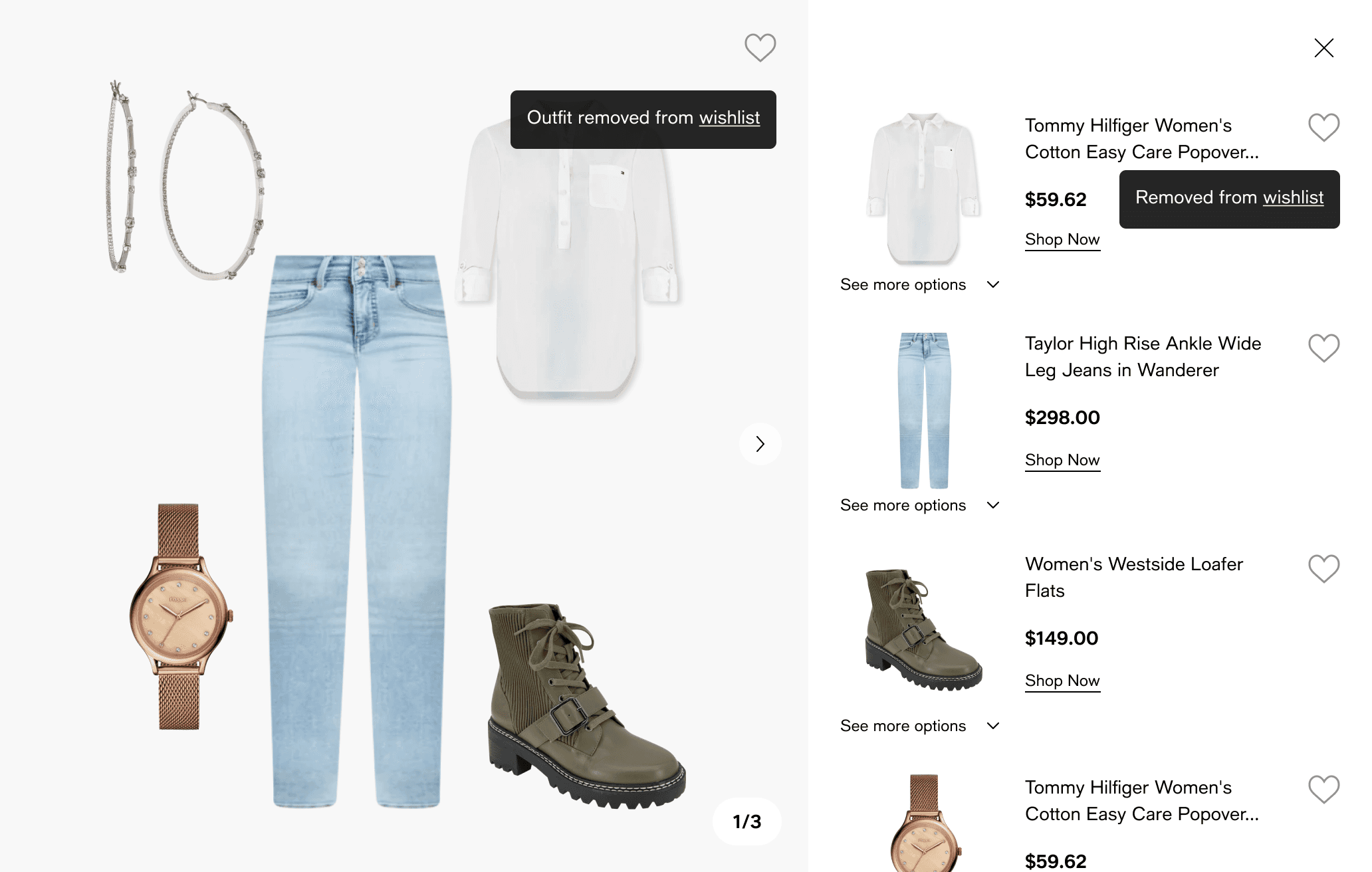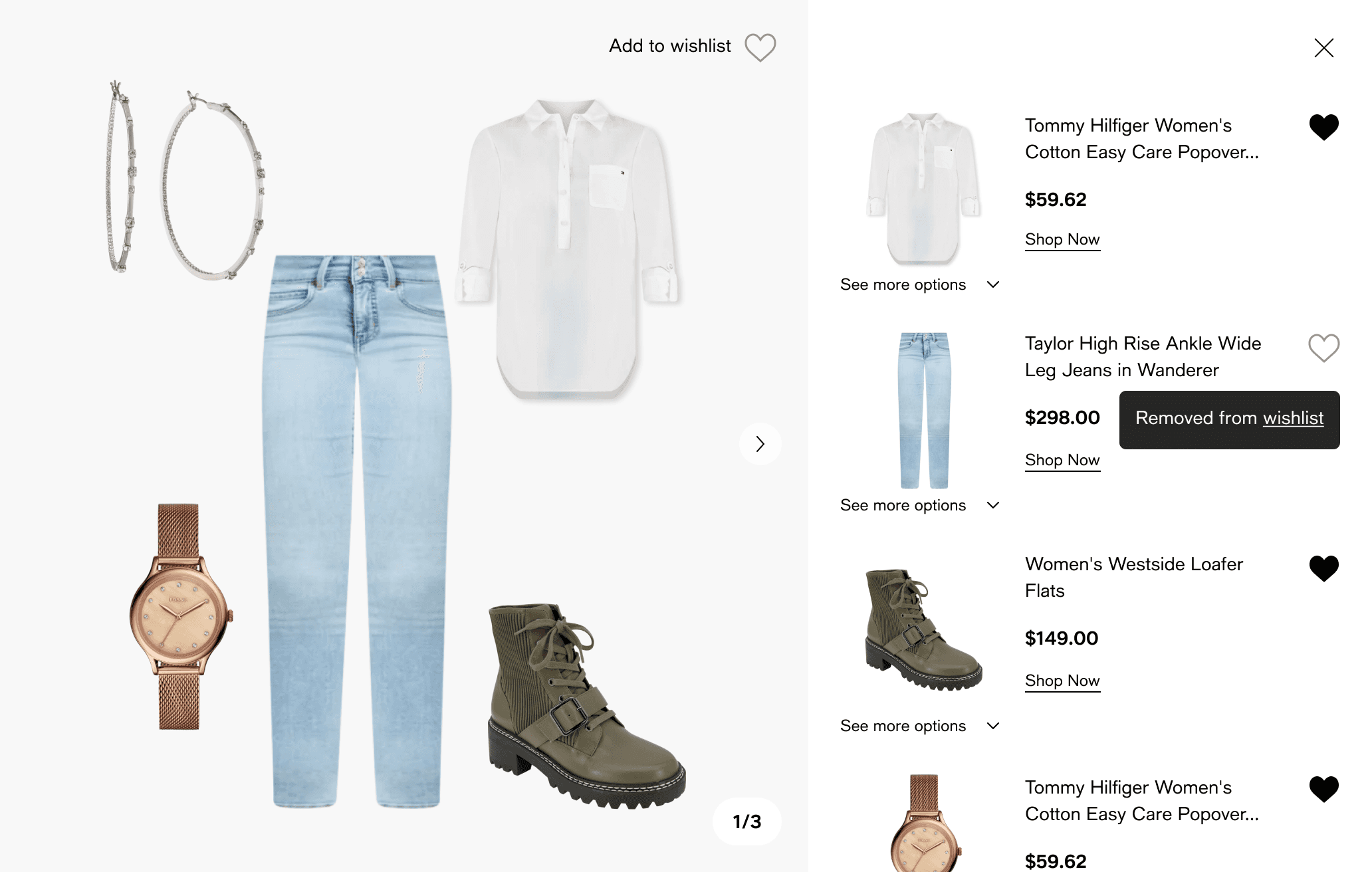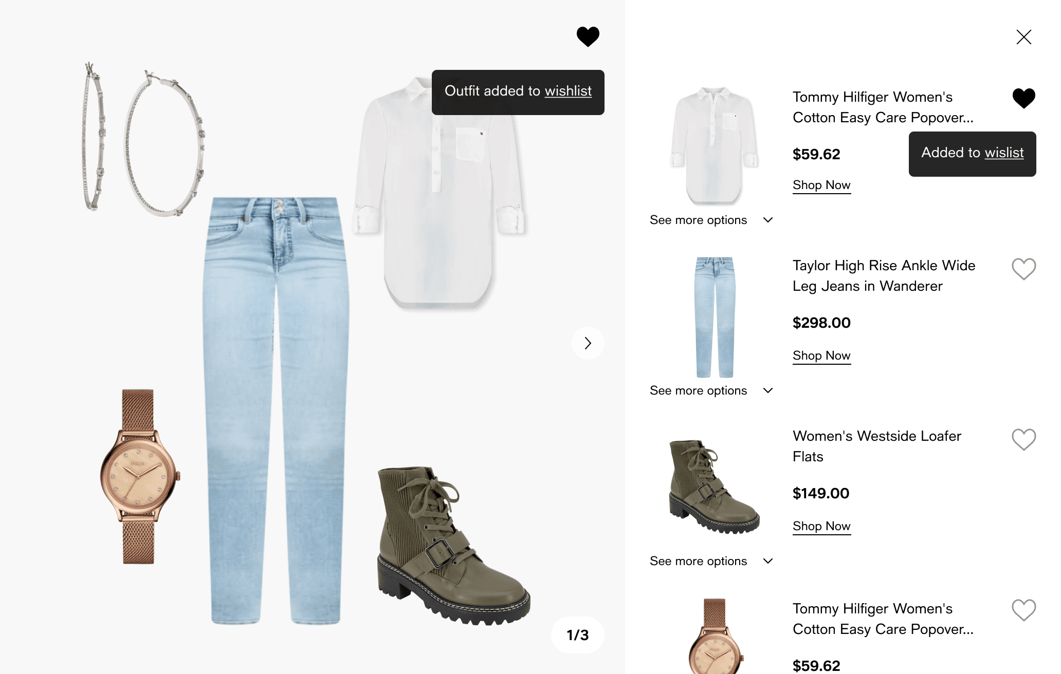 Wishlist flow, Outfit flow (“shop the look”)