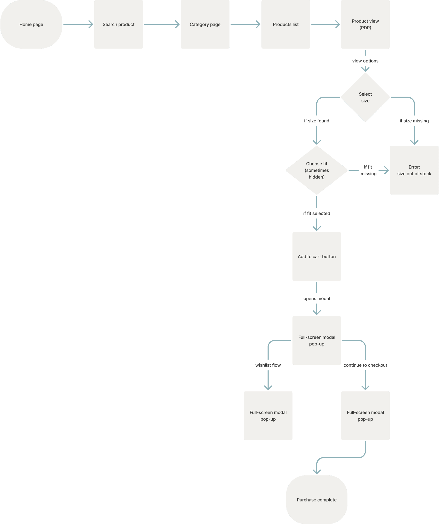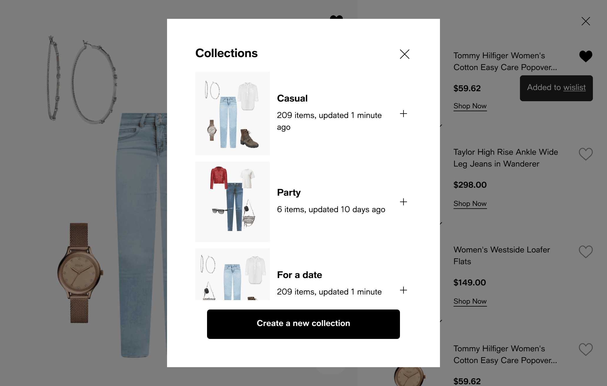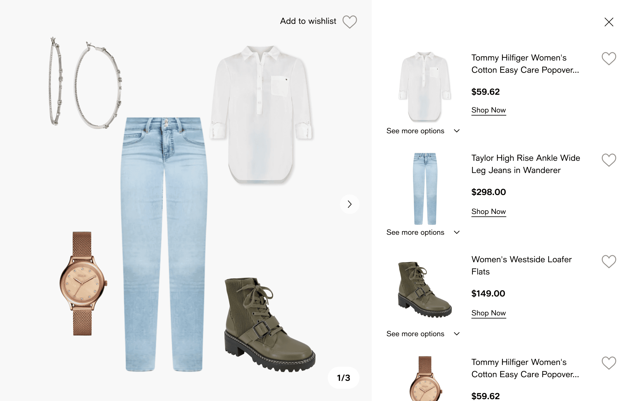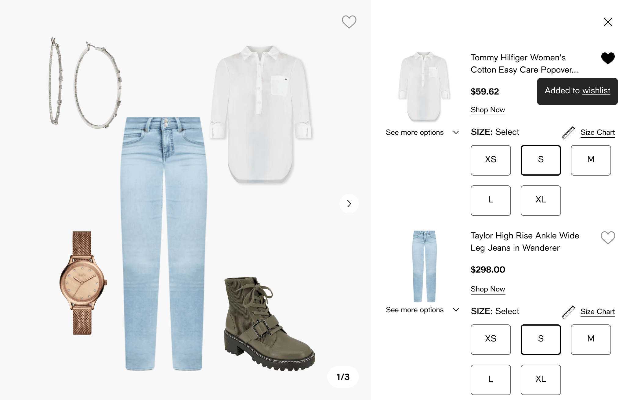 Wishlist flow, Outfit flow (“shop the look”)