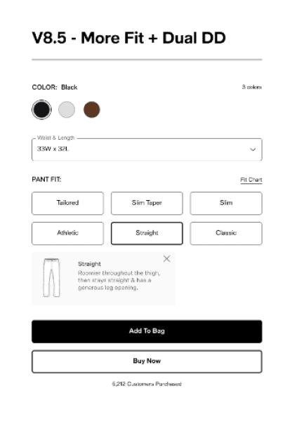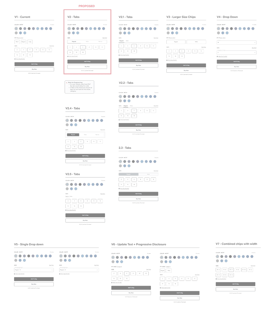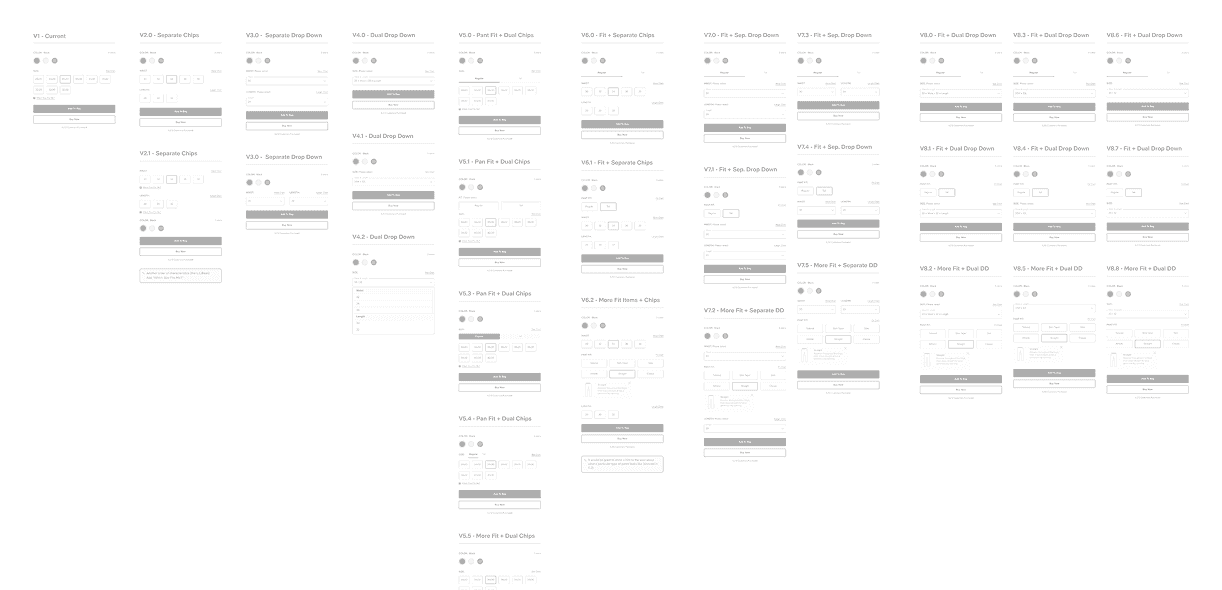 Every category had a different way to pick size — dropdowns here, chips there, big tables somewhere else. Hard to compare and a bit messy.